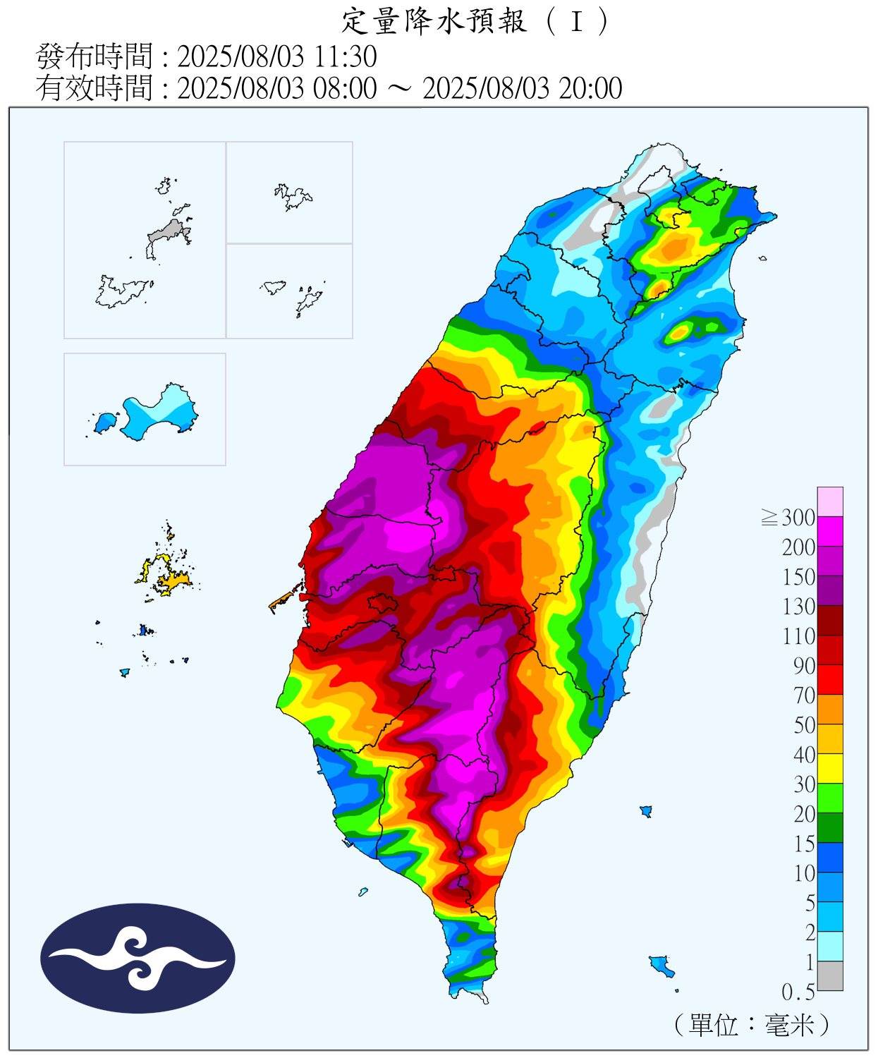 中央氣象署持續發布「0728西南氣流豪雨事件」,並對中南部5縣市發布超大豪雨、豪雨特報。另「白鹿」颱風已於(3日)早8時生成,其最新路徑也曝光了。