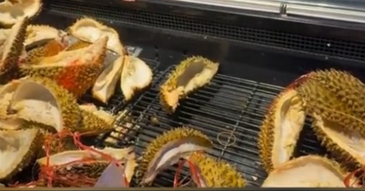 中國山西一家超市才剛開業,祭出榴槤一顆只要人民幣9.9元的優惠吸引客人,想不到卻有大媽大叔自己剝開榴槤,免費試吃,把店家50箱榴槤都給吃光了。