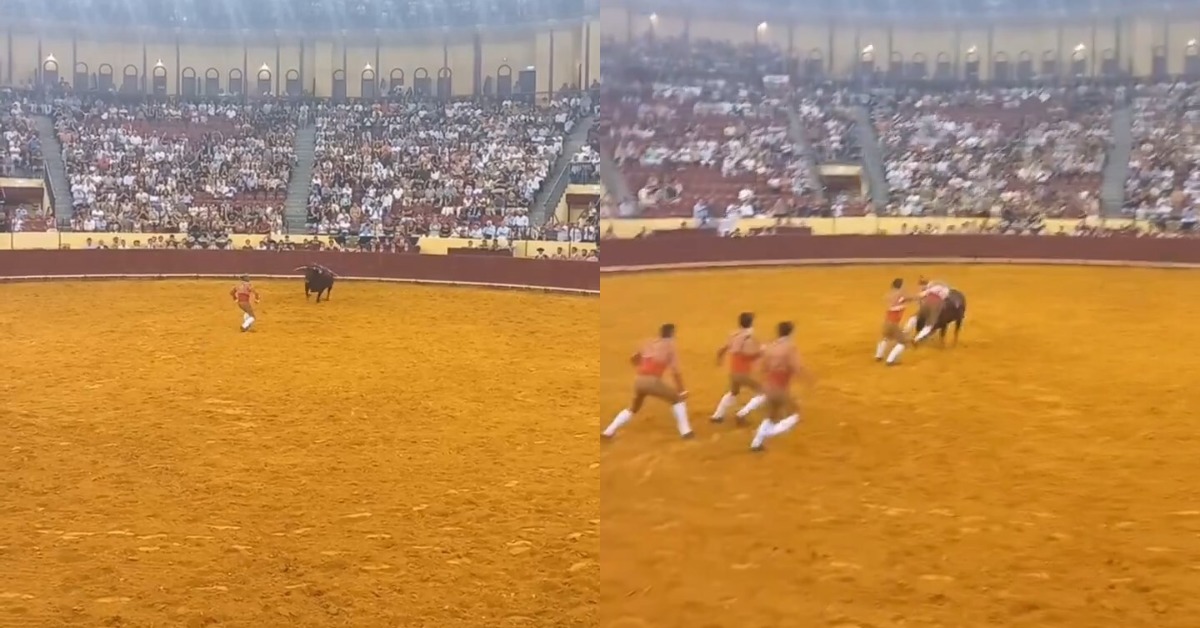 葡萄牙一名22歲鬥牛士在第一次登場表演時,因一瞬間的猶豫被牛角刺死,引發爭議。(圖/翻攝自@UpSomeone1 X)