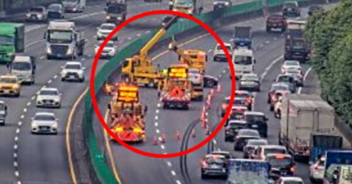 國道1號南下97公里新竹交流道路段,今(16日)上午約6點07分,發生2輛轎車追撞、占用內線車道事故,造成後方「紫爆」大回堵,僅剩13公里。