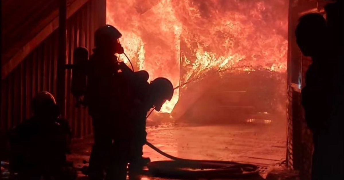 由於起火的建築位在狹小巷弄內,消防車難以進入,消防人員拉了6條水線並出動救災機器人對現場進行搶救。