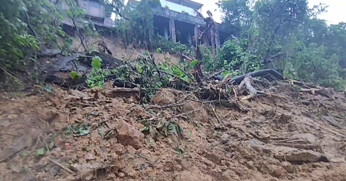 新北汐止康寧街、福德一路口土石坍塌。(圖/東森新聞)
