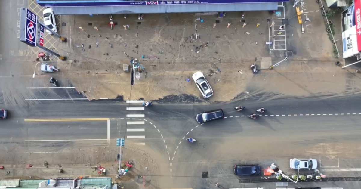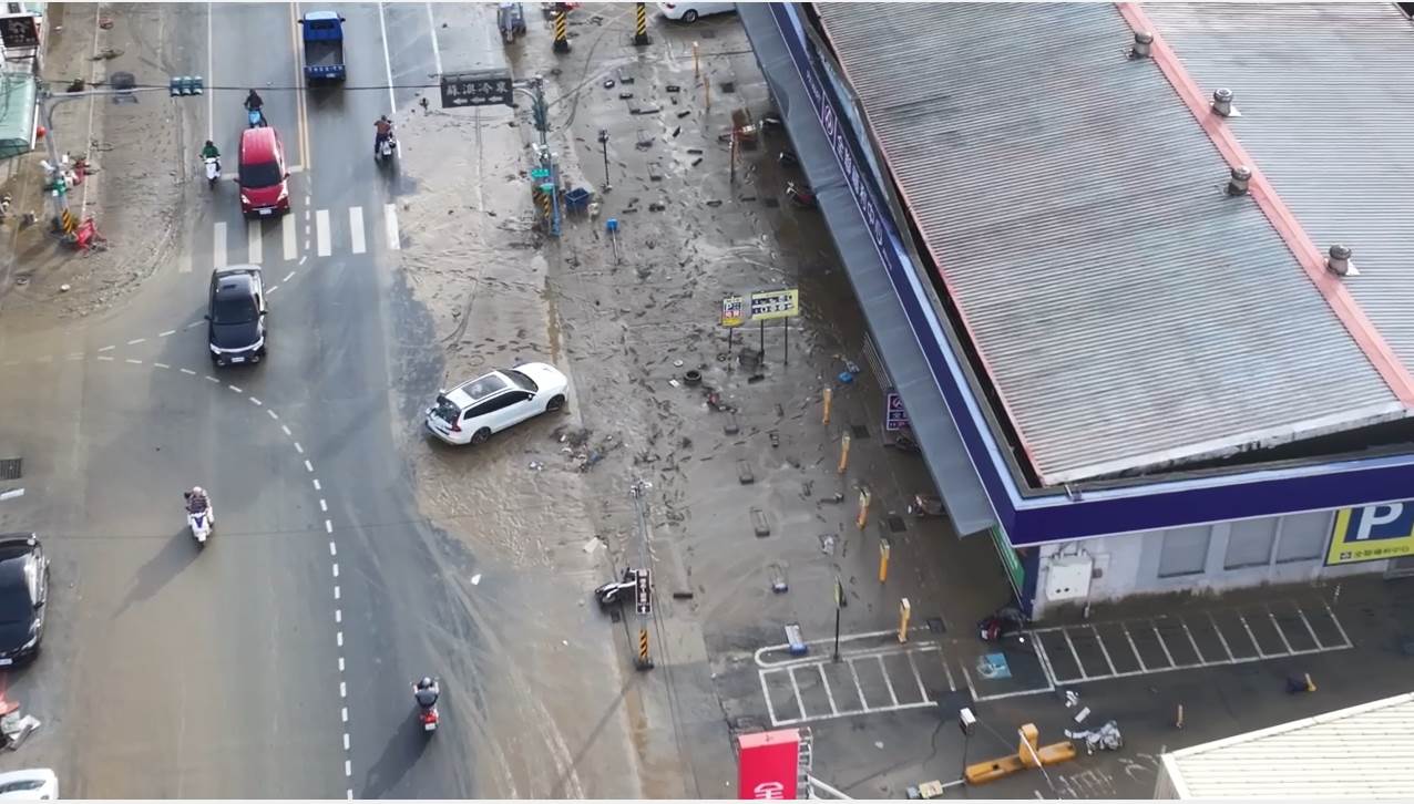 持續追蹤蘇澳災情,空拍畫面可見,蘇澳街道兩側仍有大量泥水,還有停放路邊車輛被沖到斜停路邊,導致車輛在大水退去後,宛如待被開單的違停車;而大水不只帶來泥沙,也在退去後留下滿地殘骸、垃圾。