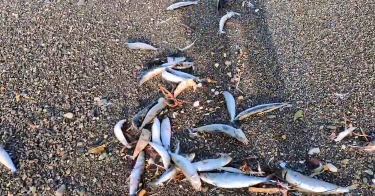 日本青森外海8號發生7.5強震,有日本網友在地震前拍下沙丁魚集體擱淺。(圖/翻攝自X@kazuhiro_nikki)