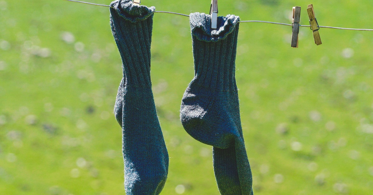 除了洗的方向,清洗與晾曬流程也會影響效果。岡美分享三個實用原則:第一,襪子脫下後立即翻面,避免濕氣悶在內側,成為細菌繁殖的溫床、第二,清洗時放入洗衣袋,可減少洗衣機拉扯與摩擦,降低纖維磨損、第三,晾曬前再將襪子翻回正面,避免乾燥不均,同時維持襪型與鬆緊度,延長使用壽命。