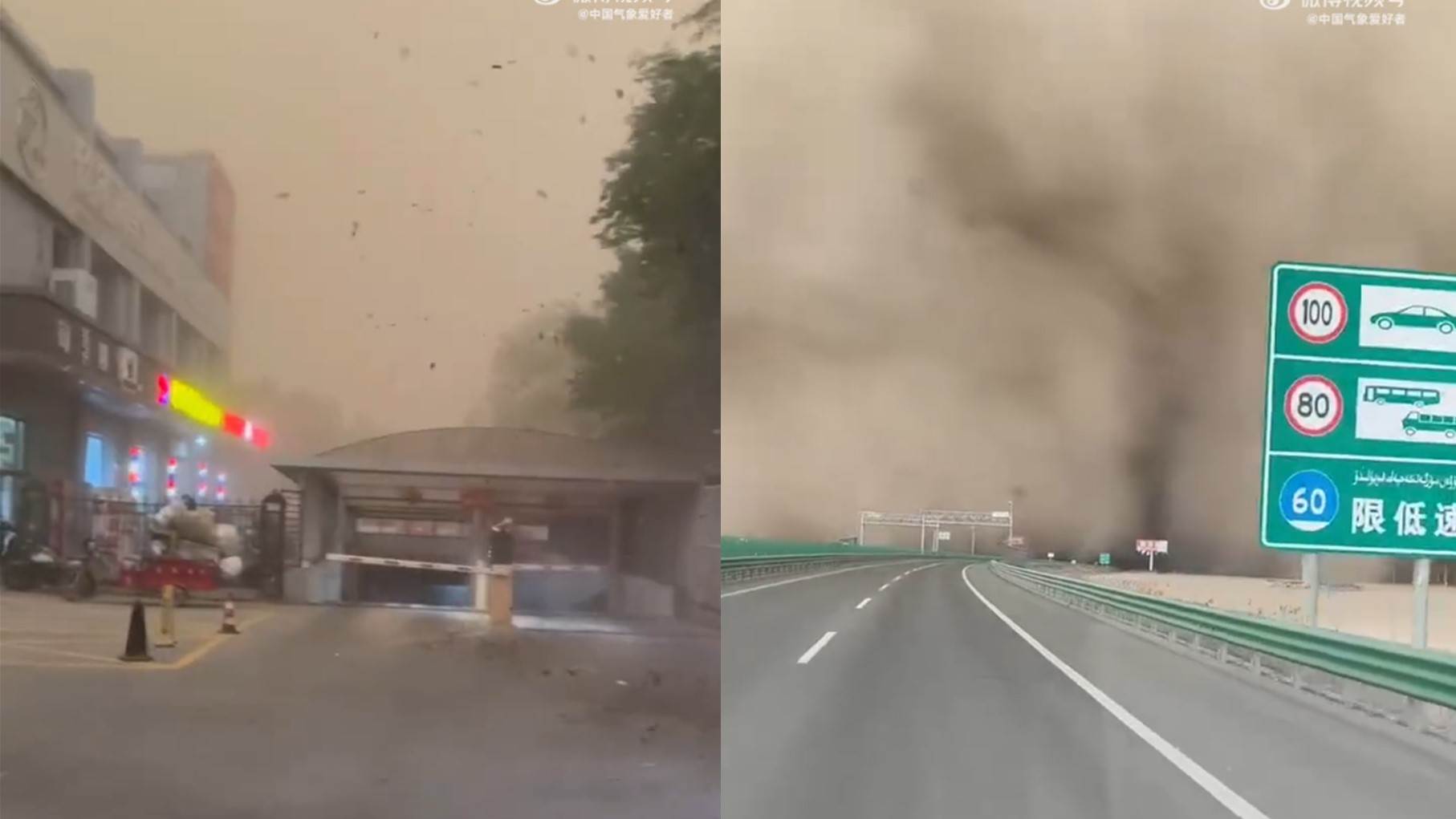 中國發生嚴重沙塵暴,能見度相當低。(圖/翻攝自中國氣象愛好者微博)